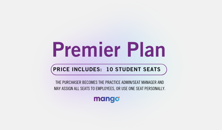 Ideal for growing practices. Includes 1 Practice Admin/Seat Manager account plus 2 student seats. Includes all 12 lessons, AI roleplay, live coaching, workbook, and certificates. 60-day access.